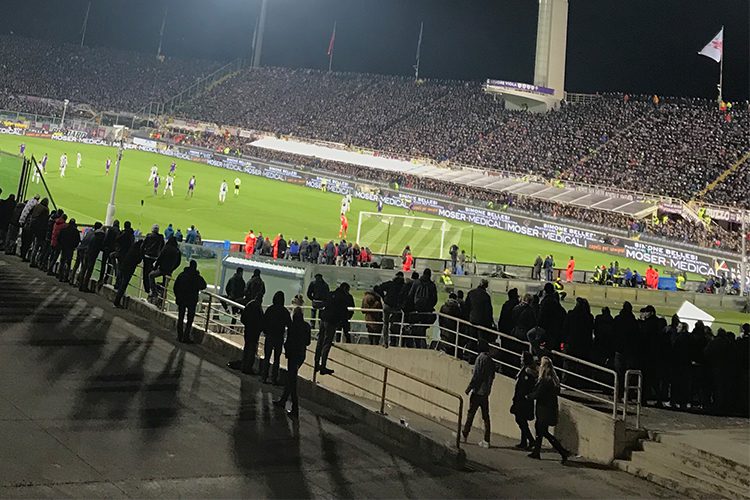 Heading to our seats, we noticed the sheer amount of people that were packed into the stadium and realized that this was something that was not of the ordinary. Excitement filled the stadium while the Fiorentina fans sang the songs of the club. I have personally never heard a louder stadium and the voices grew louder with every shot, every foul, and every pass.