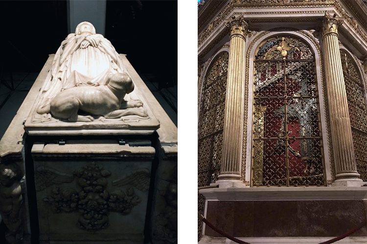 An English guide introduces me to the sleeping beauty: her name is Ilaria Del Carretto. She was the wife of Paolo Guinigi, the Lord of Lucca, who ruled from 1400 to 1430. Ilaria’s royalty and high rank is evident through her contemporary gothic clothing. At her feet lies a small dog, looking over his shoulder to protect his master. I look to the guide to seek what the sleeping beauty needs protection from, and learn Ilaria suffered a death following the birth of her second child. She was only 24.