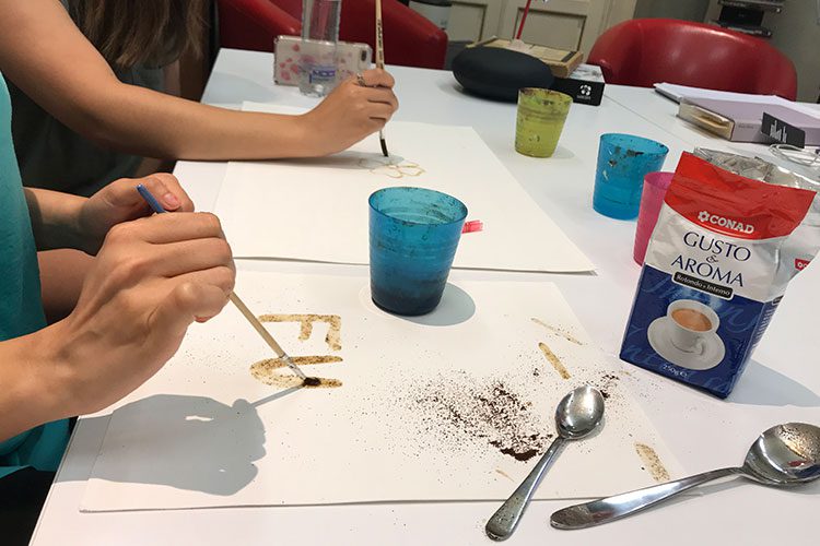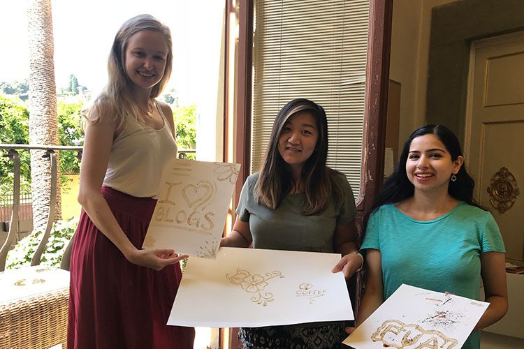 Journalism student Guneet Singh teaches us how to paint with coffee.
